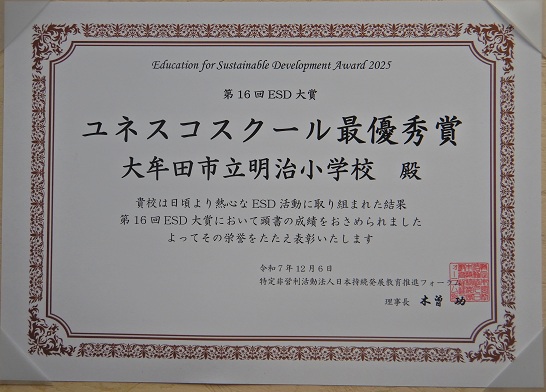 ユネスコスクール最優秀賞受賞しました
