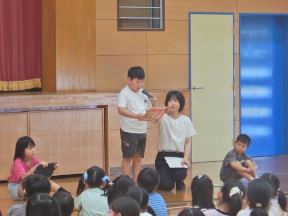 1年生から6年生までの代表の人の発表では、算数で「どんなふうにしたらできるようになったのか」や「みんなが気持ちよく過ごせるだろうと思って、毎日放課後掃除した」など聞いていて気持ちや様子がよくわかるように言うことができていました。