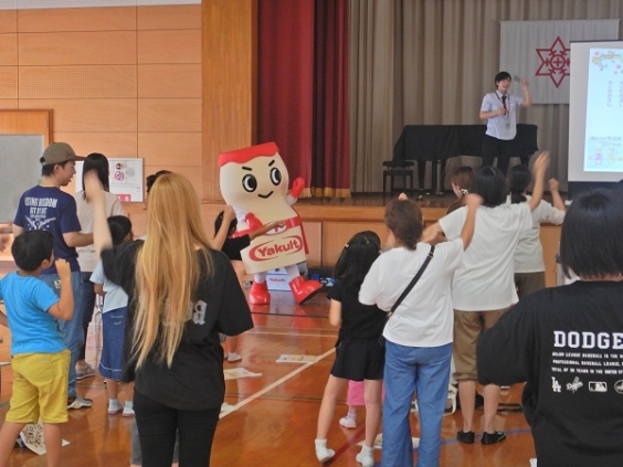 今日(10月2日)は、2年生の親子学習会を行いました。 講師にヤクルトの方をお招きし、腸の調子を整えることの大切さや生活習慣についてお話いただきました。最後はヤクルトマンと一緒に体操をして終わりました。お家の方と一緒に座ってお話を聞いていた子供達は、にこにこととても嬉しそうでした。