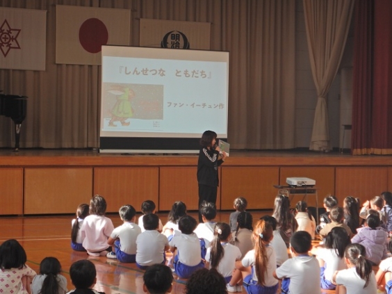 その後、11月の生活目標「本を楽しく読もう」について、本を紹介しながらお話がありました。学校でも本に親しむための活動がいろいろと計画されています。その様子をまた紹介してきます。