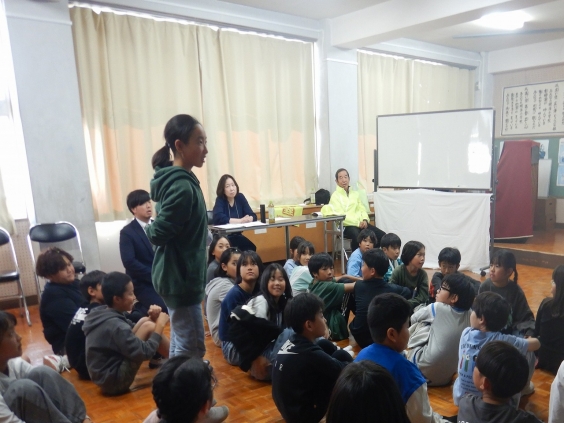 11月6日、5年生は総合的な学習の時間に、まち協やこもれびの方々、それいゆの方々などにお越しいただき、認知症についての学習をしました。認知症についての話を聞いた後、オリジナルの「浦島太郎」の劇を観ました。
