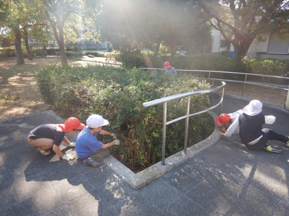 11月7日、全校児童で明治校区の清掃を行いました。今年もデンカ株式会社から23名の方が参加してくださいました。子供達は地域別に分かれて、デンカの方々と一緒に通学路や公園のごみを拾いました。初めは、ごみを見つけるたびに「あった。」と言いながら嬉しそうな表情を見せていた子供達でしたが、次第に「だれがこんなところに捨てるのだろう。ここは、ごみ箱ではないのに。」という声が聞こえてきました。たくさんのごみを拾って自分達の校区がきれいになったことに喜びを感じるとともに、ごみはきちんと持ち帰ろうと心に決めた様子の子供達でした。