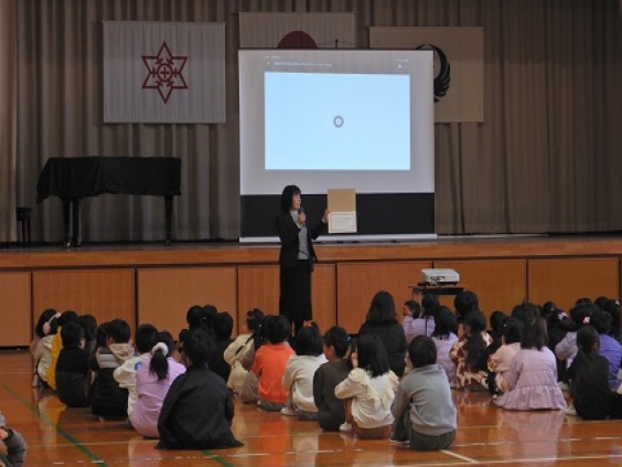 今日(12月10日)は、児童集会でエネルギー環境委員会による発表が行われました。
