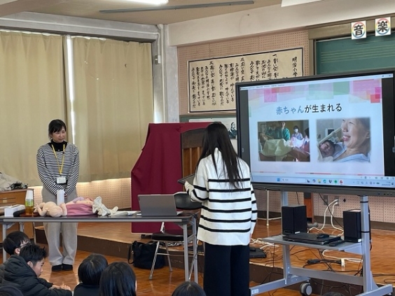今日(2月3日)は、学校保健委員会を実施しました。正しい性の知識について、大牟田市立病院の助産師高口先生をお招きしてお話をしていただきました。