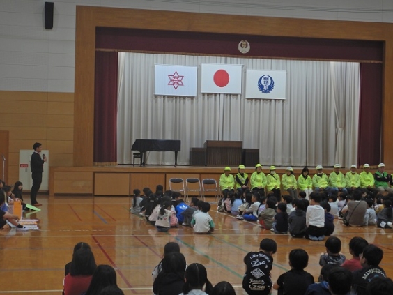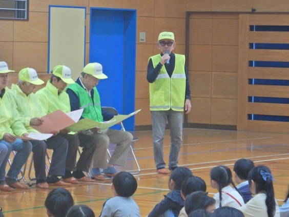 PTA会長にも来ていただき、見守り隊の方々と子供達へご挨拶いただきました。