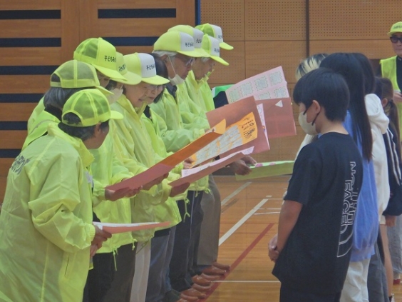 今日(4月22日)は、見守り隊の方においでいただき、見守り隊の方の顔を確認するとともに、これまでの感謝の気持ちを伝える会を行いました。