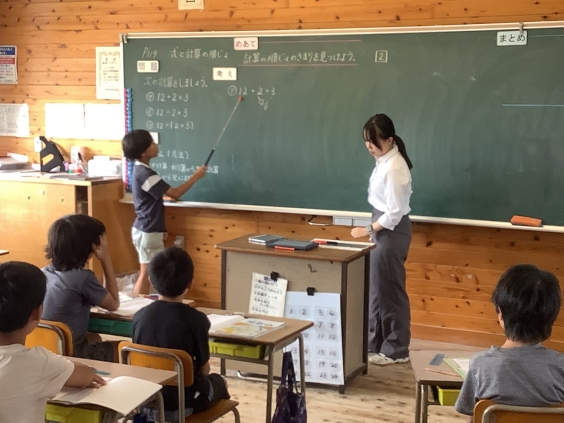 9月18日(木)に4年2組で研究授業を行いました。算数の学習で「計算のきまりの順序を見つけよう」をめあてに学習を行いました。 「左から順に計算する」「かっこの中から先に計算する」「かけ算やわり算から先に計算する」というきまりを見つけた子供たちは、積極的に計算の間違いを考えたり、自分の力に応じた練習問題をしたりして、自分の力を伸ばそうと頑張っていました。 真剣に学習課題に取り組む姿、先生や友達の話や説明を聞く姿ともに、さすが4年生と思える態度でした。