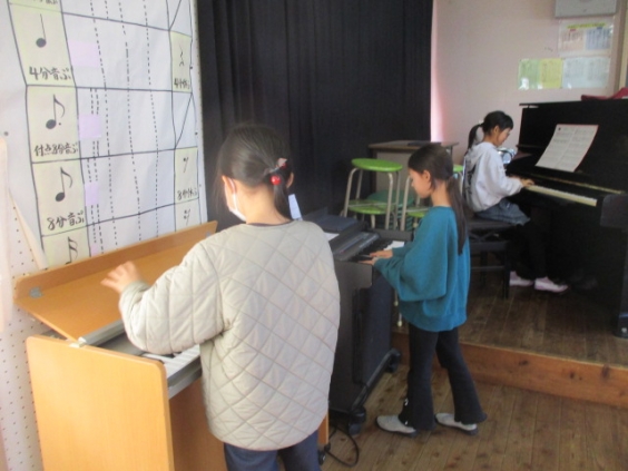 今、どの学年も学習発表会の練習に取り組んでいます。 3年生は、合奏で「紅蓮華」、リコーダーの演奏で「メリーさんのひつじ」、合唱で「とどけようこのゆめを」を発表します。今日は、楽器毎に別れて練習しました。 どのグループもタブレットや楽譜を見ながら打ち合わせをして、自分達で楽器を用意し、練習しました。「ここはどうすればいい?」「こうやってみて。」「お手本のメロディを確かめよう。」など、途中でより良くするための相談をしながら、練習する姿はとても素敵でした。