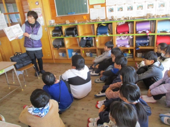 今日は、子ども達がいつも楽しみにしている読書ボランティア「トトロの樹」の皆様に絵本の読み聞かせをしていただきました。 季節に合わせて冬がテーマになった絵本も見られ、子ども達は絵本の世界にすっかり引き込まれていました。 どの学年も本が大好きで、休み時間などよく図書室で本を借りています。これからも、たくさんの本を読んで、人生を豊かにしてほしいです。