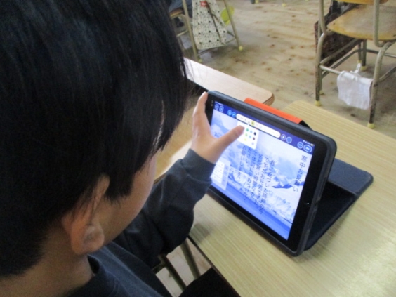 パソコンは寒中見舞いを作成しました。デザインや文章を入力し、オリジナルの作品を作りました。文字の色や大きさなど、工夫していました。