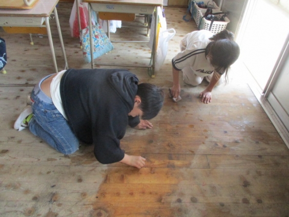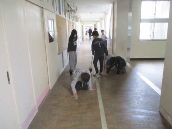 今日は、修了式前の最後の掃除がありました。子ども達は、絵の具セットや鍵盤ハーモニカなどが入っていた棚の中や傘立ての下など、いつもはしない所まで丁寧に掃除をしていました。 掃除後の反省では「今までありがとうの気持ちをこめてできた。」「とてもきれいにできた。」と満足げな晴れ晴れとした表情でした。自分達が使った教室や学校に対する、感謝の気持ちが表れていました。