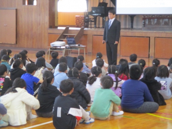 今日は、修了式がありました。この1年間、重点目標の学習や生活で、頑張って目標を達成したことを振り返りました。 また、靴箱やトイレのスリッパをきちんと並べていることや黙々と清掃に励んでいる姿、学習で先生や友達の話をしっかり聞いたり、自分の考えをもって話し合ったりする姿など素晴らしかったこと等を振り返りました。子ども達は、来年も継続して頑張ろうと意識を高めていました。