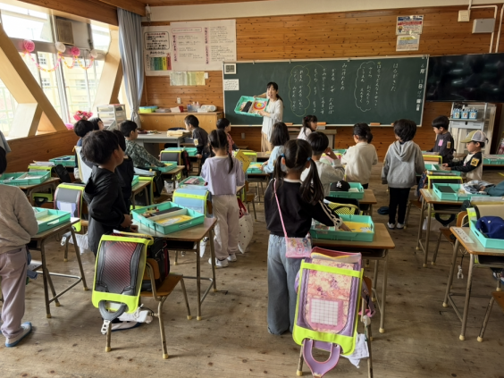 入学式後の初登校日。1年生は全員出席でした。久しぶりに1年生の教室から子供たちの明るい、元気な声が響いていました。 学校での3時間の学習でしたが、静かに話を聞いて、とても頑張っていました。ぜひご家庭で、今日の学校の様子を聞いていただき、明日も頑張るよう声かけをしてください。まだまだ学校生活に慣れるまで、疲れて帰ってくる日もあるかと思います。ご家庭での健康管理も併せてよろしくお願いいたします。