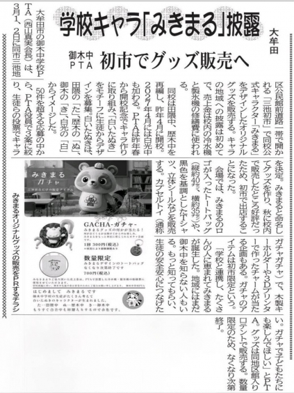 有明新報の1面に「みきまる」の記事が掲載されました。