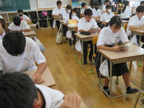 朝読書に取り組みました。 各自で本を家から持ってきたり、図書館で借りたり、タブレットを使って電子図書館の本を借りたりしながら、各自で取り組む10分間。 静かに頁(ページ)をめくる音だけが聞こえるゆっくりした時間。 今回をきっかけに、読書に目覚める人が一人でも増えるといいなと思っています。 秋の夜長に子供と一緒に本を読んでみませんか?