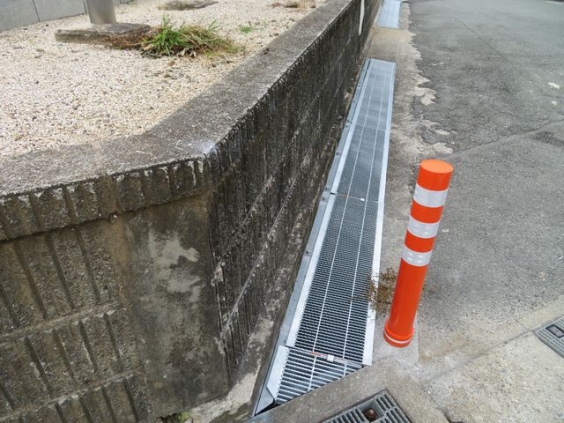 教頭 三浦です。 正門前の坂道は、側溝が東西の両端にあり、幅が狭い状態でした。 そのため、グレーチングと呼ばれる銀色の穴あきの蓋(フタ)を設置していただきました。 今回、坂道一番下の扇形部分(東側)にもグレーチングを設置していただきました。 また、ポールを立てていただいたので、安全に登下校できるようになったと思います。