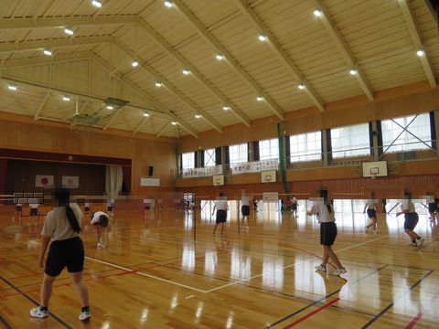 教頭 三浦です。 3年生保健体育の授業では、バドミントンを実施していました。 最初は、高く打ち上げてラリーを続ける練習でした。 上手に高く打ち上げ、ラリーが何回続くのか「1・2・3・・・」と数えながら練習をしていました。20回くらい続いていました。