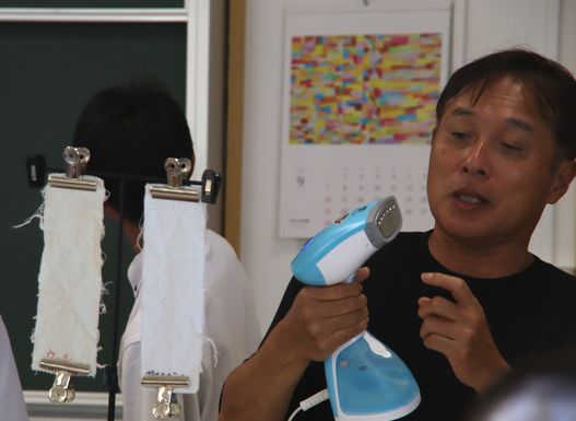 1枚目は、長い時間スチーマーの湯気をあてていたのですが、シワシワのままです。