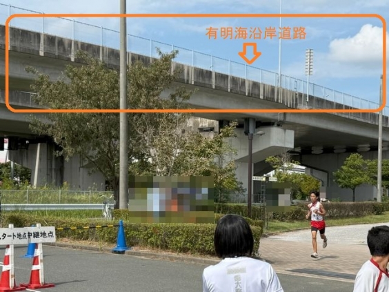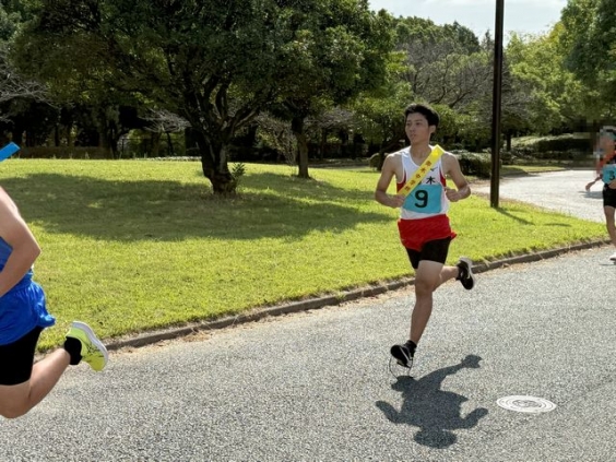 駅伝競走大会 男子は、6区間で行われました。 場所は、諏訪公園周回コースです。 写真1枚目はスタート直前です。 心を整え、号砲を待っています。 ランナーにとっては、カーブがあることや、木々が生い茂っているため、周りのランナーが見えず孤独な闘いが繰り広げられます。 写真4枚目はゴール付近です。 後ろに見える橋は有明海沿岸道路です。