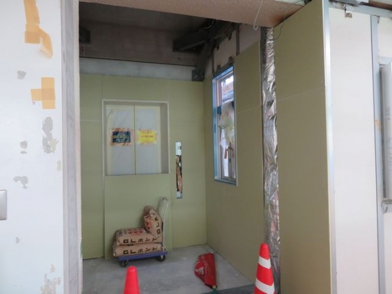 エレベーター工事の進捗状況です。 教頭 三浦です。 完成まであと少し・・というところまで来ているそうです。 工事関係者の話では、11月末には完成し、検査が行われます。 さて、工事関係者には、とても気を使っていただき、土日に工事を進めていただいています。 今回は、壁に石膏ボードが付きました。 石膏ボードに色がつく予定です。