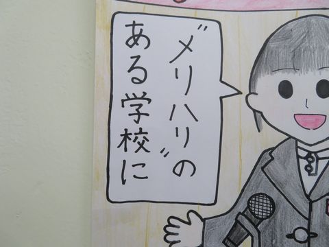 想い描いたことは、必ず実現します! 100年以上前に、遠くの人と話をしたいと想った人がいたから、電話ができ、いつでも地球の裏側の人とも話ができます。 今回、任期満了に伴う、生徒会役員改選選挙が行われました。 すでに、立会演説会・投票・開票・発表まで行われております。 さて、今回は、ポスターから公約を紹介しました。 今回、選挙に立った人全員がリーダーです。 それぞれの立場で、今の気持ち・想い描いた「一歩進んだ」いや「100歩くらい進んだ」素晴らしい御木中をぜひ実現しましょう。