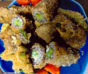 写真3は、大城 颯亜さん作 アスパラ牛肉チーズ巻きです。