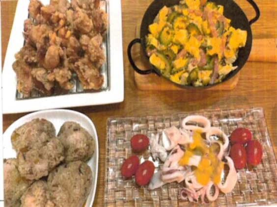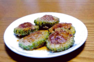写真2は、時津 蓮人さん作 ゴーヤの肉づめです。