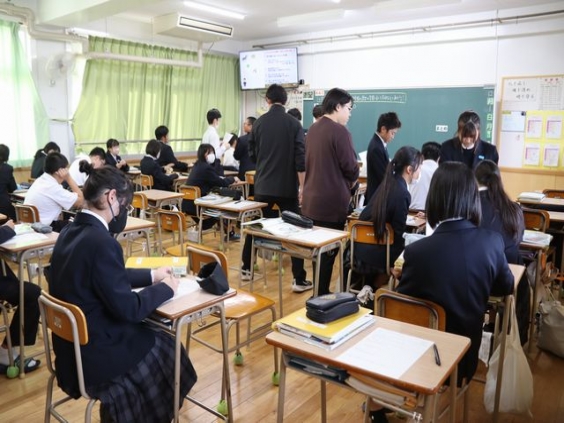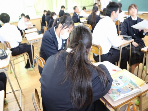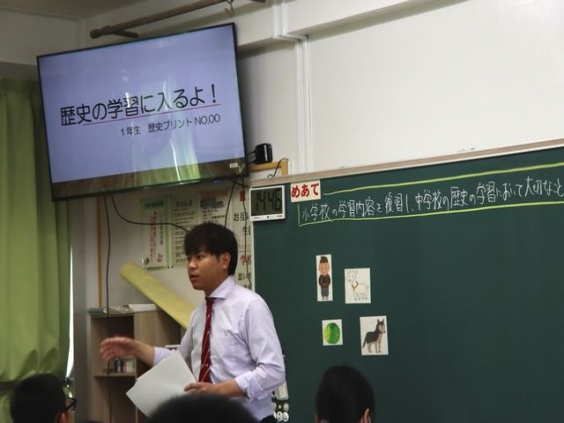社会科 坂本教諭の授業を他校からも含めて7名の先生が見学されました。
