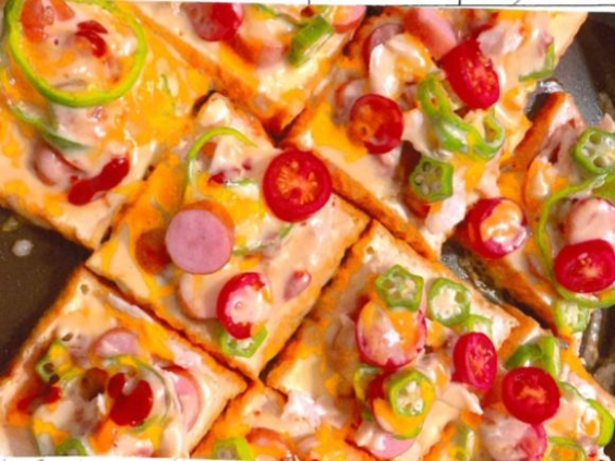 写真3は、島 琉太朗さん作 厚揚げの彩りピザです。
