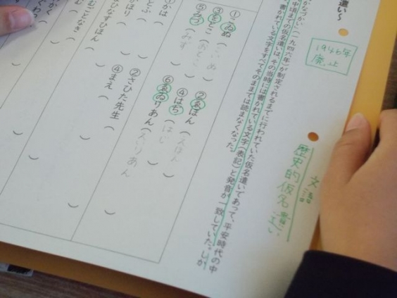 歴史的仮名遣いは、1946年に廃止! 1年生国語科で歴史的仮名遣い(文語体)の学習をしていました。 1946年に廃止されていたことを、初めて知りました。 つい最近まで、使われていたのだと、改めて実感しました。 生徒たちは、とても楽しそうに学習に取り組んでいました。 教頭 三浦でした。