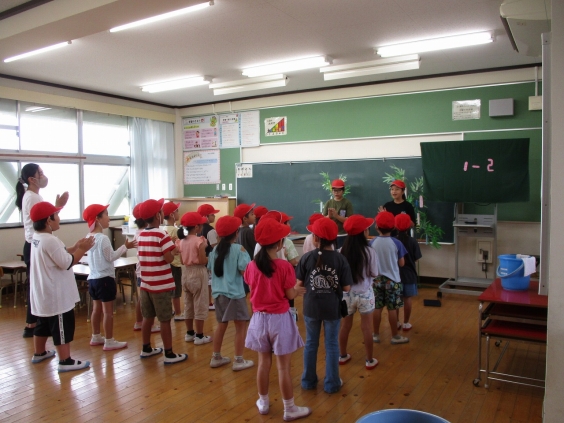 1年生は、小学校に入って初めての運動会。教える側の5,6年生も、教わる側の1年生も初めは緊張していました。1年生から少しずつ声が出始めると、
