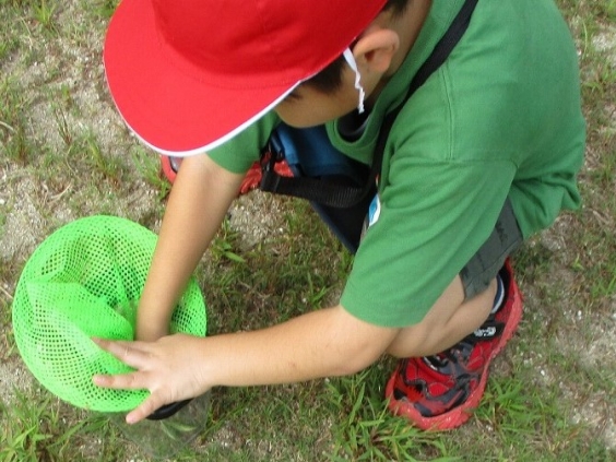 10月3日金曜日 10月2日5校時に、1年生は生活科で「虫をさがそう」の学習をしました。残暑が厳しく、この日も気温が高く、なかなか虫が見つからないようでした。虫を見つけた児童は、大喜びで、大切に飼育ケースに入れていました。しかし中には、ひとりでバッタを5匹捕まえることができた児童もいて、うらやましがられていました。 しばらく学級でお世話をした後、また外へ戻す予定です。