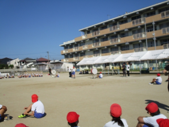 今日は、素晴らしい秋空の下、1校時目から第2回の全体練習でした。今日は応援合戦の練習も行いました。応援団の係の先生が、「応援合戦は、プログラムの一番初めにあります。それは、自分のブロックと相手のブロックそれぞれに頑張っていこうというエールを送る意味と、応援合戦をして運動会のいいスタートとなるように、という意味です。」と子供達に説明しました。