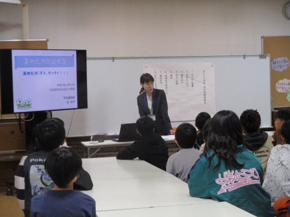 10月21日火曜日に5年生児童と保護者の方々を対象に「薬物乱用防止教室」がありました。本校の学校薬剤師の弘先生を講師としてお招きしました。