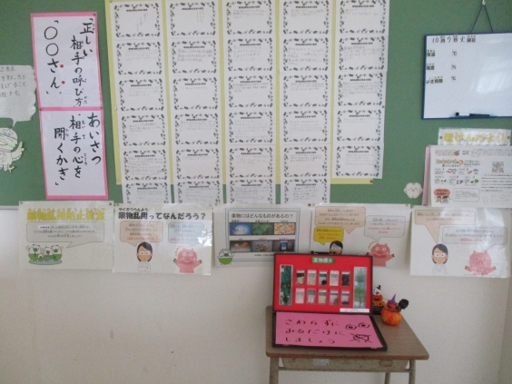 子供達の感想は、早速養護教諭が保健室前に掲示し、薬物見本も展示していました。