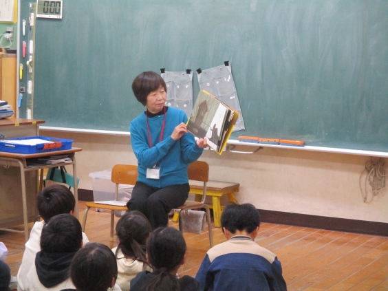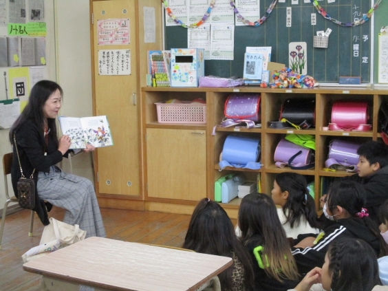 11月21日金曜日 11月20日の朝はアリスの会の皆さんによる読み聞かせでした。毎回子供達も楽しみにしています。 これまで13年間アリスの会で活動してこられた田中さん。昨日が最後の活動の日となられました。昨日は、1年生へ、「ろくべえ まってろよ」と「うえきばちです」の2冊を読み聞かせしてくださいました。子供達は、楽しみながら聞き入っていました。 長い間、子供達のために心あたたまる時間をありがとうございました。