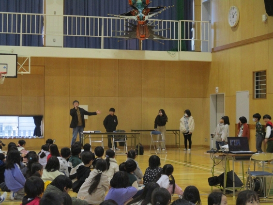 今年、みなと小学校が校区の特色を生かして学んできたことを子供達から紹介しました。各クラスの代表の児童が有明海や三池港での学び、防災減災学習のことについて紹介し、監督さん話の中に、「みんなが掃除してくれた海岸のシーンが出てくるよ。」とありました。演技指導では、数名しか前へ出ないだろうという予想に反し、30人ほどの児童が前で、「言葉のリレー」をしました。最後に6年生の代表児童が、「ぼくは大牟田で生まれ、大牟田で育ちました。だから大牟田のことを映画にしてくださってとてもうれしいです。」とお礼の言葉を述べました。