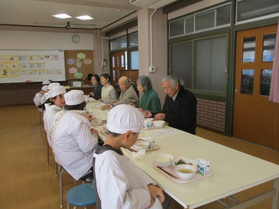 1月30日金曜日に、校区の子ども見守り隊の方々をお招きして給食試食会を行いました。各学級から2名ずつ子供達も参加し、とても和やかな雰囲気で給食をいただきました。