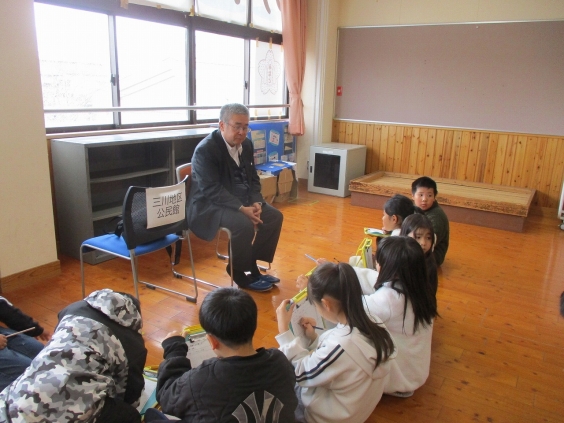 2月25日の2,3校時に地域の方々をお招きして、3年生が調べ学習を行いました。地域の三川地区公民館の館長さん、読み聞かせボランティアのアリスの会のみなさん、子ども食堂を主催してあるみなさん、見守り隊・民生委員さんの計7名に来ていただきました。