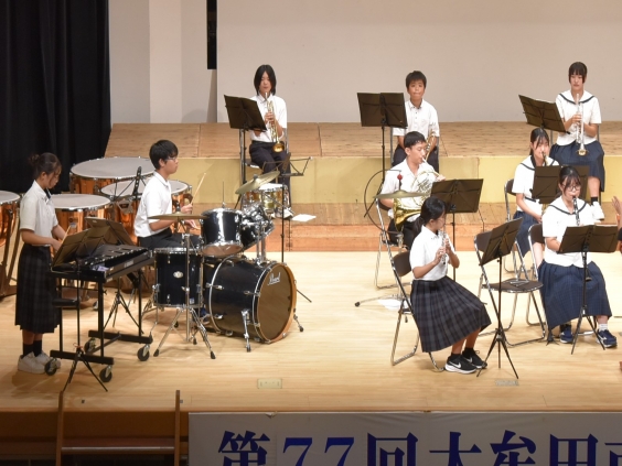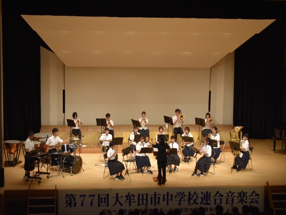 先週金曜日(9月12日)午後、大牟田文化会館小ホールにおいて、第77回大牟田市中学校連合音楽会が開催されました。開催当日は吹奏楽部(7団体)が日頃の練習成果を発揮し、どの団体も素晴らしい演奏を披露していました。 なお、今回の演奏団体の中から2団体が大牟田市の代表として、10月2日(木)に開催される筑後地区連合音楽会に出場します。