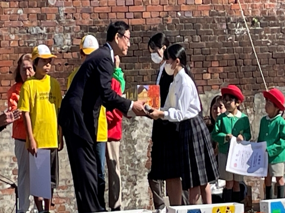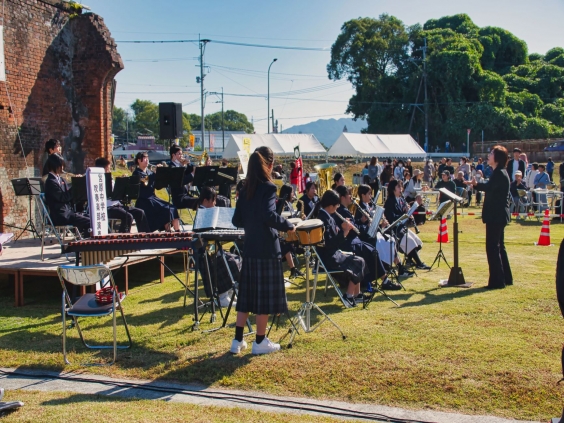 11月3日(月・祝)、「宮原坑フェスタ」が開催され、本校吹奏楽部による演奏や第2年総合的な学習の時間「未来に必要な職業について考える」での学習発表会のパネル展示を行いました。また、県立三池工業高校の生徒さんが製作し、本校美術部の生徒が装飾を施した「プランター」の贈呈及び感謝状授与式も行われました。 今回の宮原坑フェスタは、「明治日本の産業革命遺産」の世界遺産登録10周年記念も兼ねての開催でしたが、秋の晴天に恵まれ多くの方々が来場されていました。