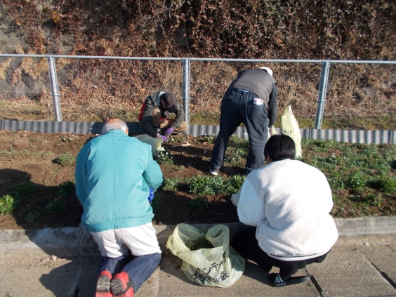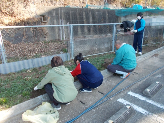 2月17日(火)午前、世界文化遺産・宮原坑の駐車場花壇の除草作業を、地域の方々と共に行いました。青空の下、有志の生徒たちが参加し、地域の方15名と協力して汗を流しました。地域とのふれあいを通じて、生徒たちの表情も晴れやかでした。
