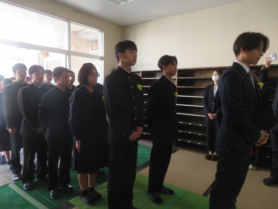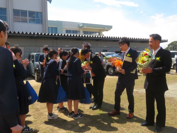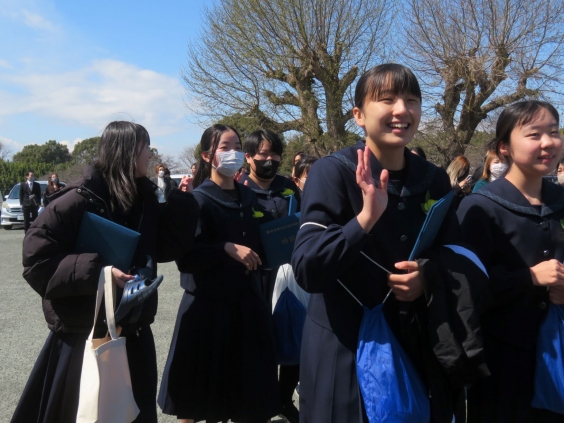 3月13日(金)午前、第9回卒業証書授与式が行われました。卒業証書授与では、学校長から生徒一人一人に卒業証書を手渡されました。その後、校長式辞に引き続き、2年生の代表生徒による送辞では3年生との思い出や学んだことなどを述べ、先輩との別れを惜しみました。答辞では3年生の代表生徒が3年間の思い出、先生、友達、親への感謝の気持ちを述べました。卒業生による別れの歌では「3月9日」「正解」を、すばらしい伴奏のもと、中学校卒業にふさわしい合唱を披露しました。