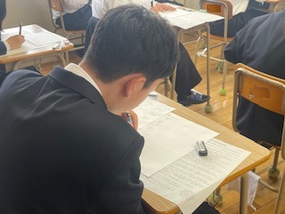 4月15日(水)、第1,2学年では大牟田市学力調査が行われました。この調査は、1年生は小学校卒業までの学習内容を、2年生は中学校入学後の1年間の学習内容がどの程度定着しているかを調べるものです。各学年ともに試験問題に真剣に向き合う生徒の姿が見られました。今回の結果をもとに、中学校卒業後の進路実現に向けてどのような学習を行っていけばよいのかを真剣に考えてほしいものです。なお、第3学年については、4月23日(木)に全国学力・学習状況調査(国語・数学・英語)が行われます。