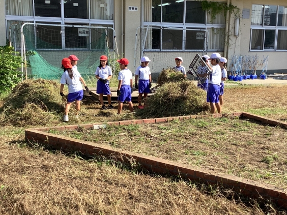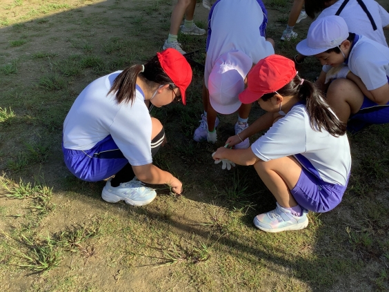 10月6日(月)今日は、親子美化活動を行いました。お家の方にも手伝っていただきながら、運動場や自分のクラスの花壇を中心に草取りをしました。子どもたちはきれいになった運動場や花壇を見て、「きれいになったから気持ちがいいです。」「お家の方にたくさん手伝ってもらって感謝したいです。」と嬉しそうに話していました。お手伝いいただきました保護者の皆様、暑い中本当にありがとうございました。
