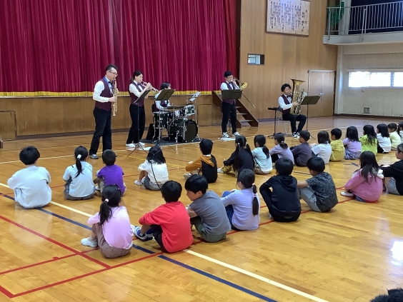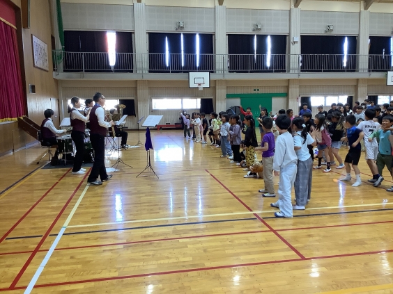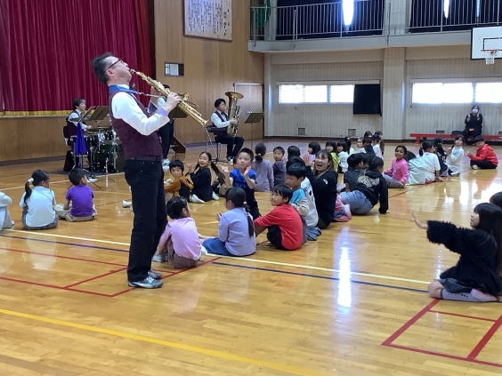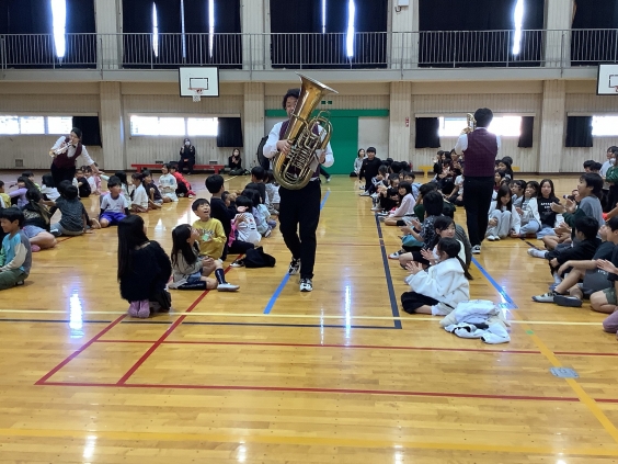 11月7日(金)に、「福岡サロンオーケストラ」の方をお迎えして、音楽鑑賞会を行いました。音楽の教科書に出てくるいろいろな管楽器とドラムセットだけで、クラシックからポップスやアニメなど、楽しい音楽をたくさん演奏していただきました。「近くで聴くととても迫力があってすごかった。」「知っている曲がいっぱいあって楽しかった。」と、なかなか間近で聴くことができない体験に、子どもたちは興味深く聴き入っていました。これからも、音楽に親しんでいけたらいいなと思います。ご多用な中、中友小に来ていただいた皆様、ありがとうございました。