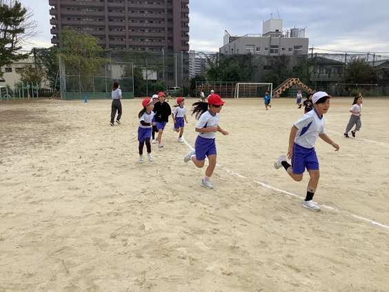 11月17日(月)より、校内持久走大会に向けて業間マラソンが始まりました。子どもたちは、毎回自分の目標をもち、5分間一生懸命に走ります。走ったあとは、記録カードに自分の記録を記入し、次回の目標を立てて頑張る気持ちを高めています。各家庭におかれましては、早寝・早起き・朝ご飯の取組を推進していただき、お子様の体調管理をよろしくお願いします。