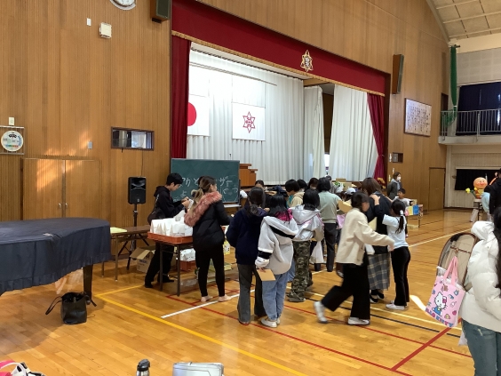11月29日(土)、持久走大会の後、中友まつりが行われました。地域の皆様や保護者の方のご協力のおかげで、子どもたちは、ゲームをしたりマジックショーに参加させていただいたりと、素敵な体験をさせていただきました。子どもたちは「ゲーム楽しい!」「マジックショーすごい!」とにこにこ笑顔で中友まつりを楽しみました。ご協力していただいた皆様、本当にありがとうございました。