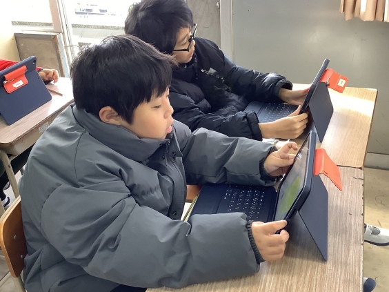 中友小学校では、朝の時間に音読タイムを行っています。今月は、内田麟太郎さんからつくっていただいた「ともだち小学校」の詩の音読が始まりました。友達と一緒に頑張っていこう!という気持ちが高まる元気の出る詩です。今日は、4年生がタブレットを見ながら音読の練習をしていました。今後全校で練習を続け、もっと上手に音読できるようにしていきます。