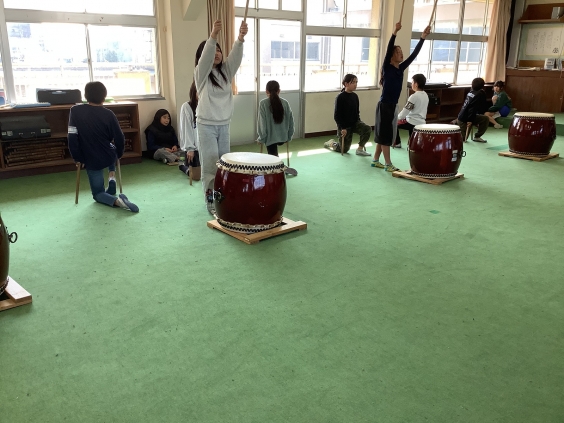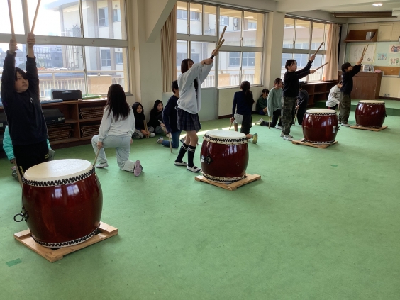 3月12日(木)5年生は6年生から教えてもらった龍神太鼓の練習に励みました。昨日は6年生がいない練習でしたが、教えてもらったことを振り返りながら、各パートのたたき方を確認しました。「6年生に褒めてもらえるように一生懸命練習を頑張りたいです。」と頼もしい5年生。これからも練習を続け、さらにかっこよく演奏できるように頑張っていきます。
